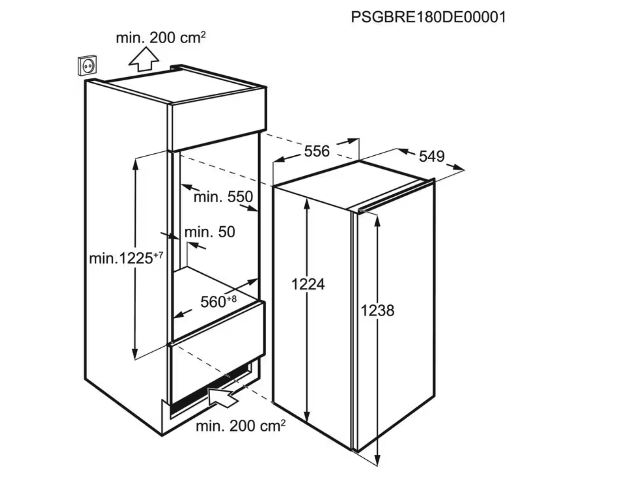 1225 mm hauteur d'encastrement