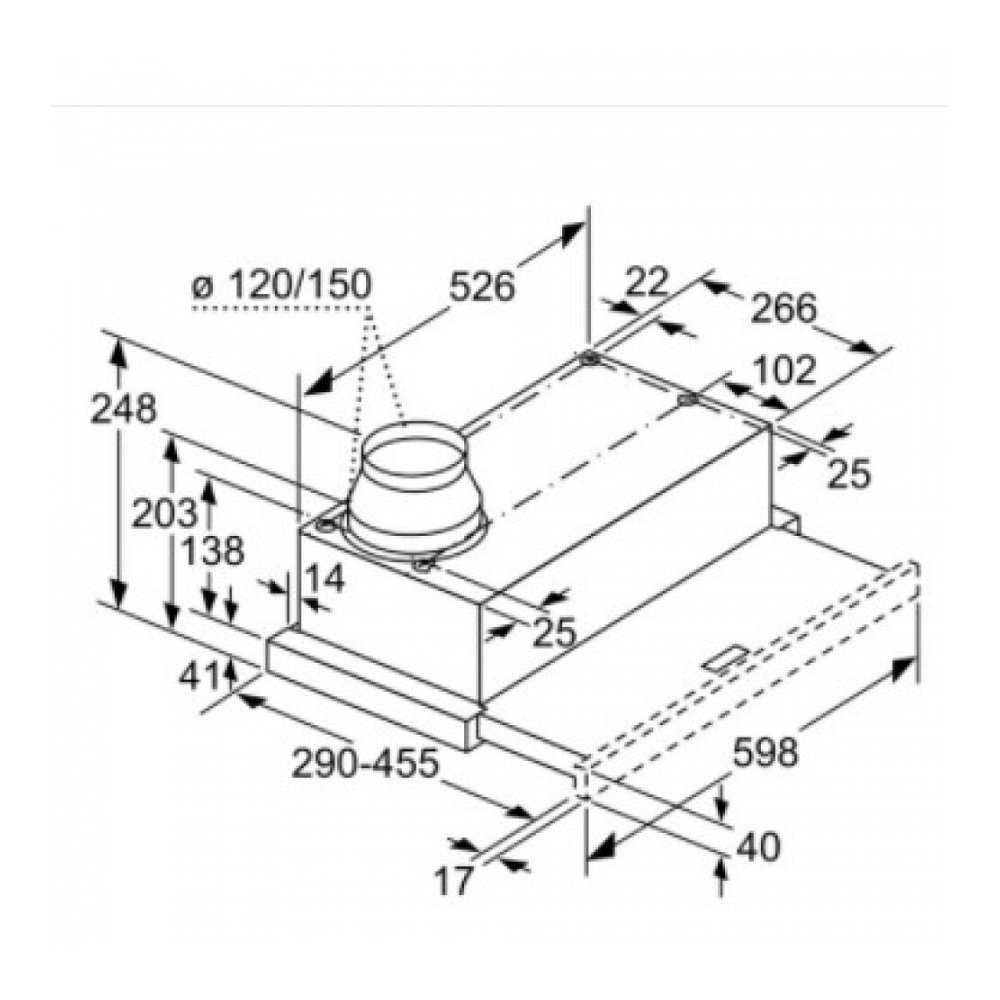 Diamètre du réducteurd'évacuation d'air : 120 / 150 mm
