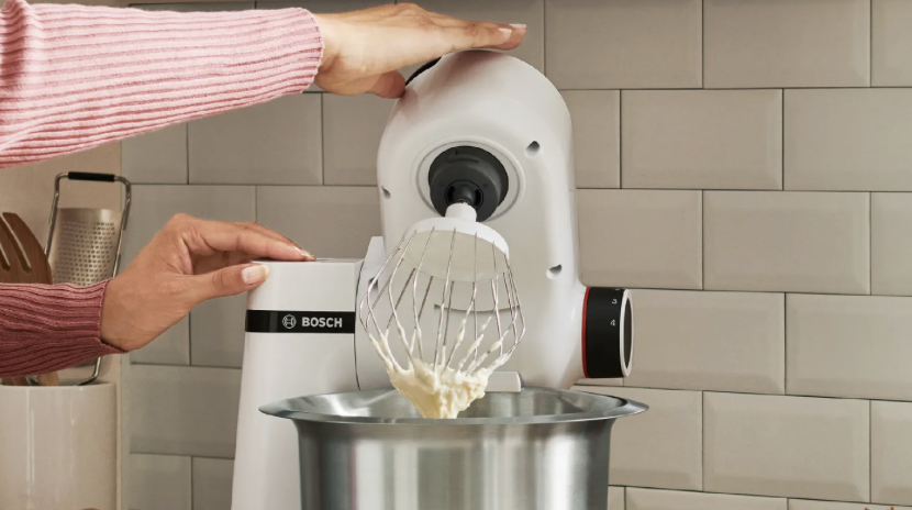 Avec crochet pétrisseur, fouet et mélangeur
