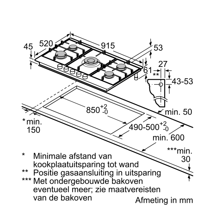- Dimensions d’encastrement (HxLxP): 45 x 850 x (490 - 500)