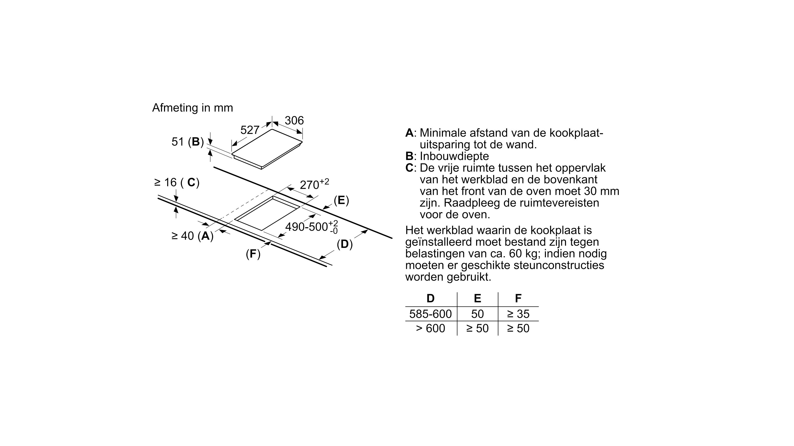 Dimensions d'encastrement (HxLxP): 51 x 270 x 490 mm