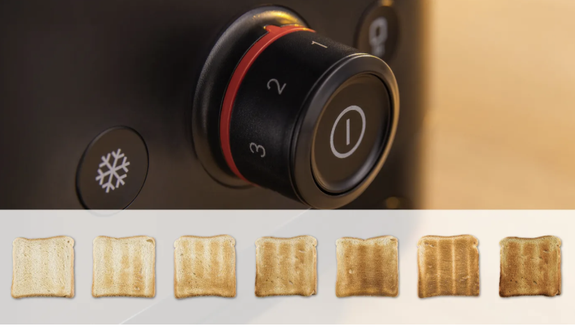 Het brood wordt gelijkmatig geroosterd dankzij de automatische