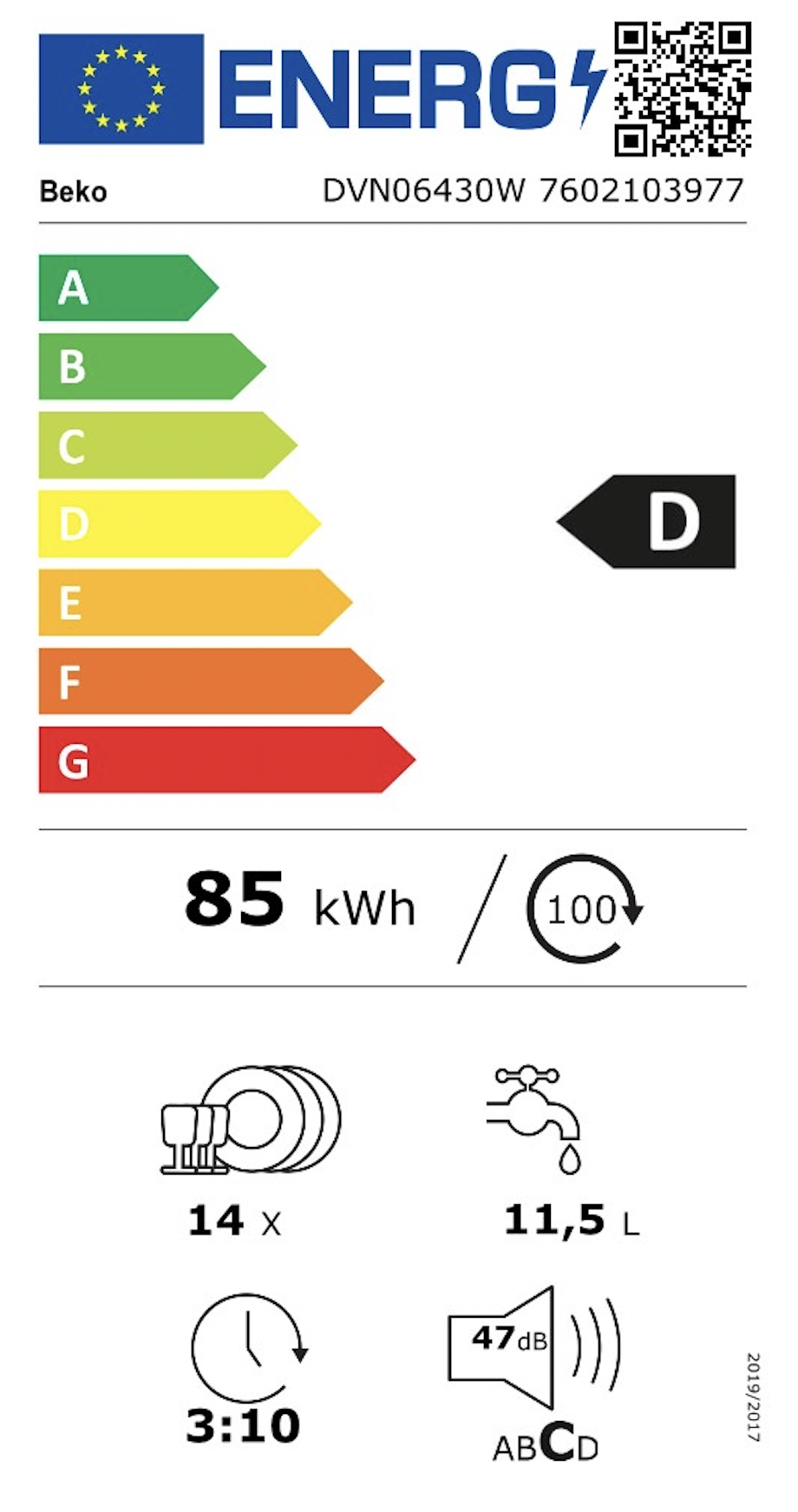 range couvert • programme silencieux: non • avec démarrage différe • 8 programmes • 60 cm largeur • connection à l'eau chaude possible • ≤ 10 litres d'eau • 13 couverts • avec indicateur du temps restant • inconnuInstallation : Pose libre QuickSelect : curseur numérique Consommation d'eau et d'énergie : 9.9 L, 0.835 kWh pour cycle Eco Fabriqué en us…