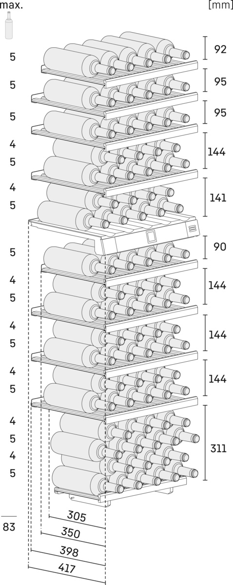 Capacité bouteilles 0,75 l bordeaux: 83