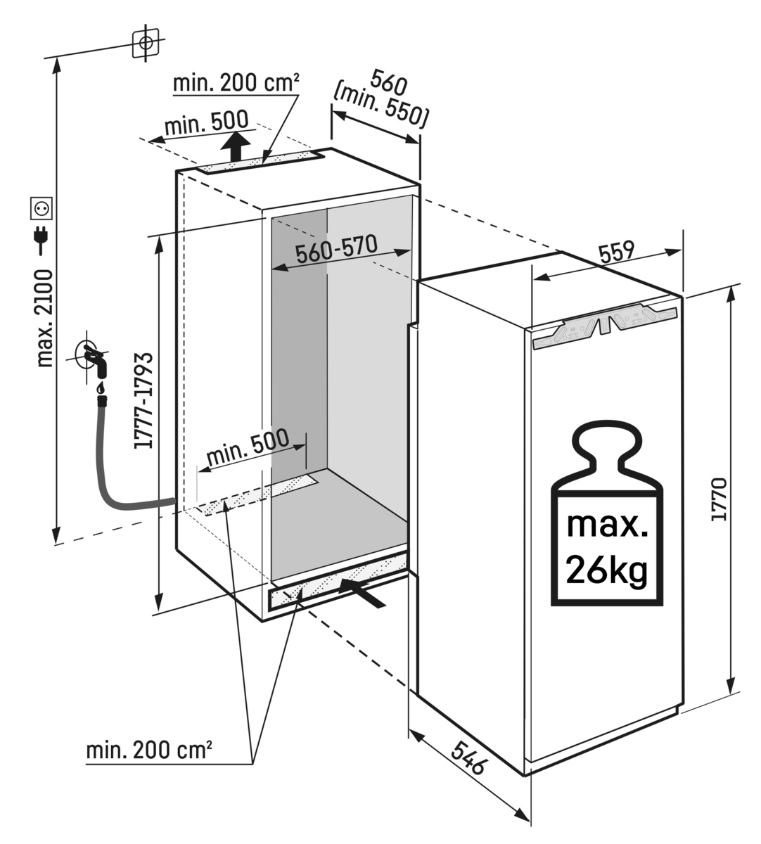 Hauteur de niche: 178 cm