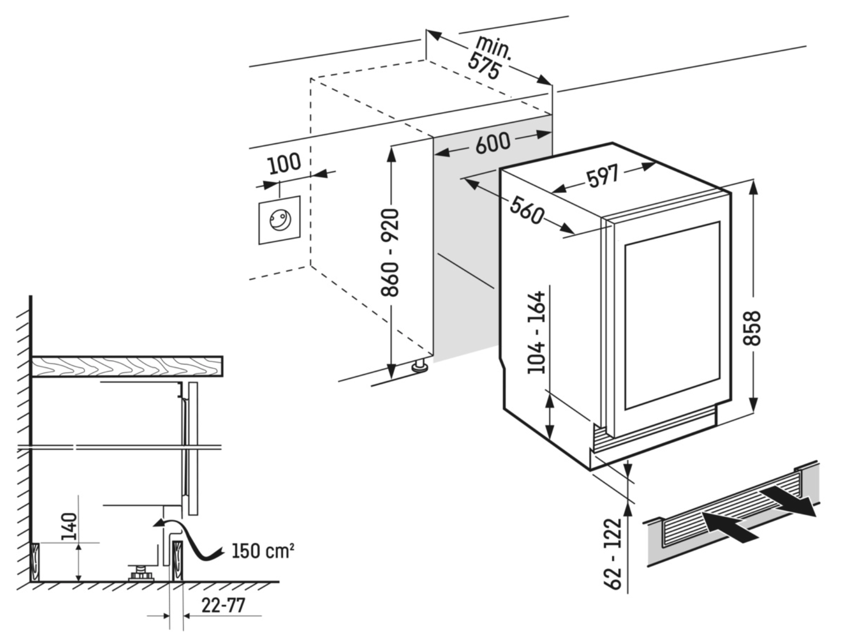 Profondeur d'encastrement min. 58,0 cm