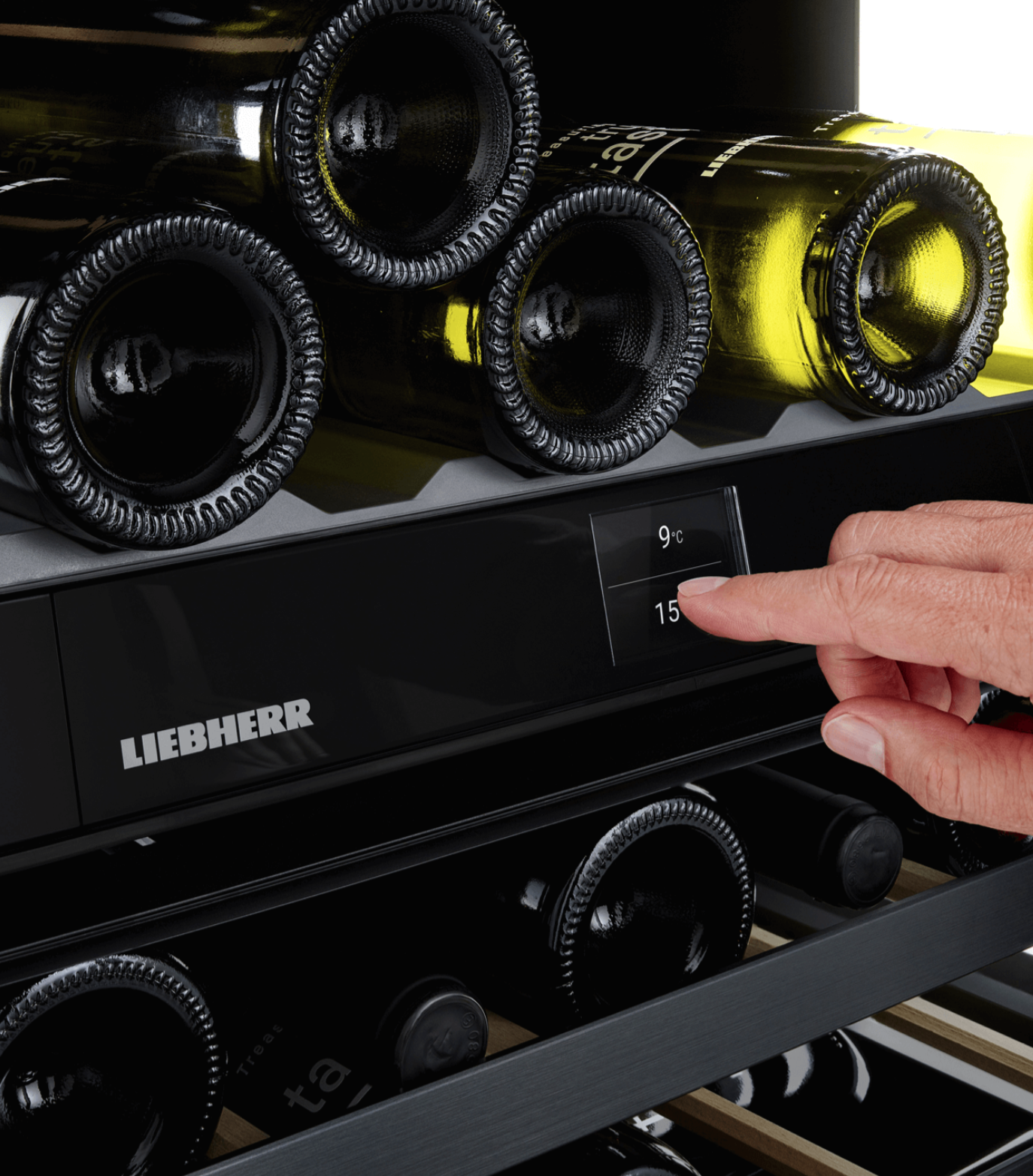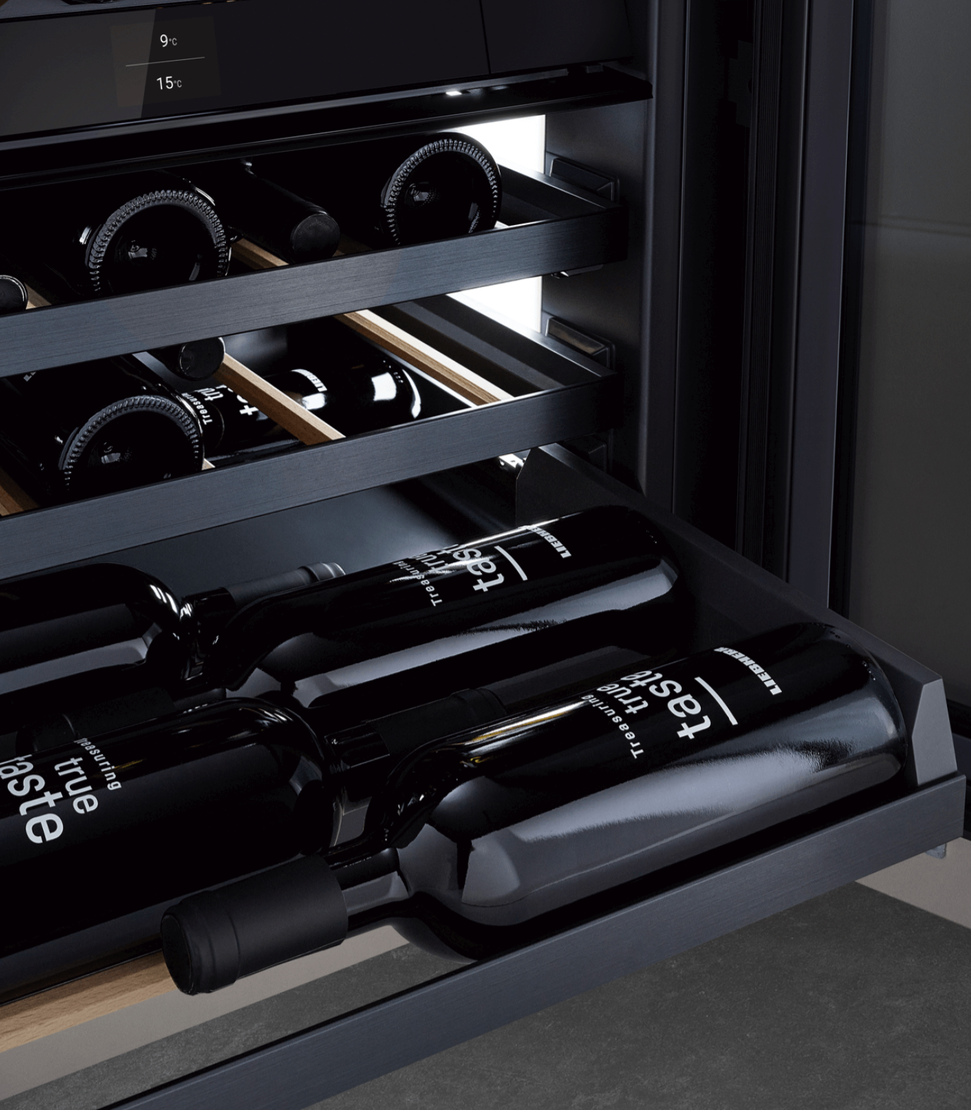Stockage de bouteilles Tablettes porteuses en bois avec façade en aluminium, flexibles Zones de temp. réglables 2