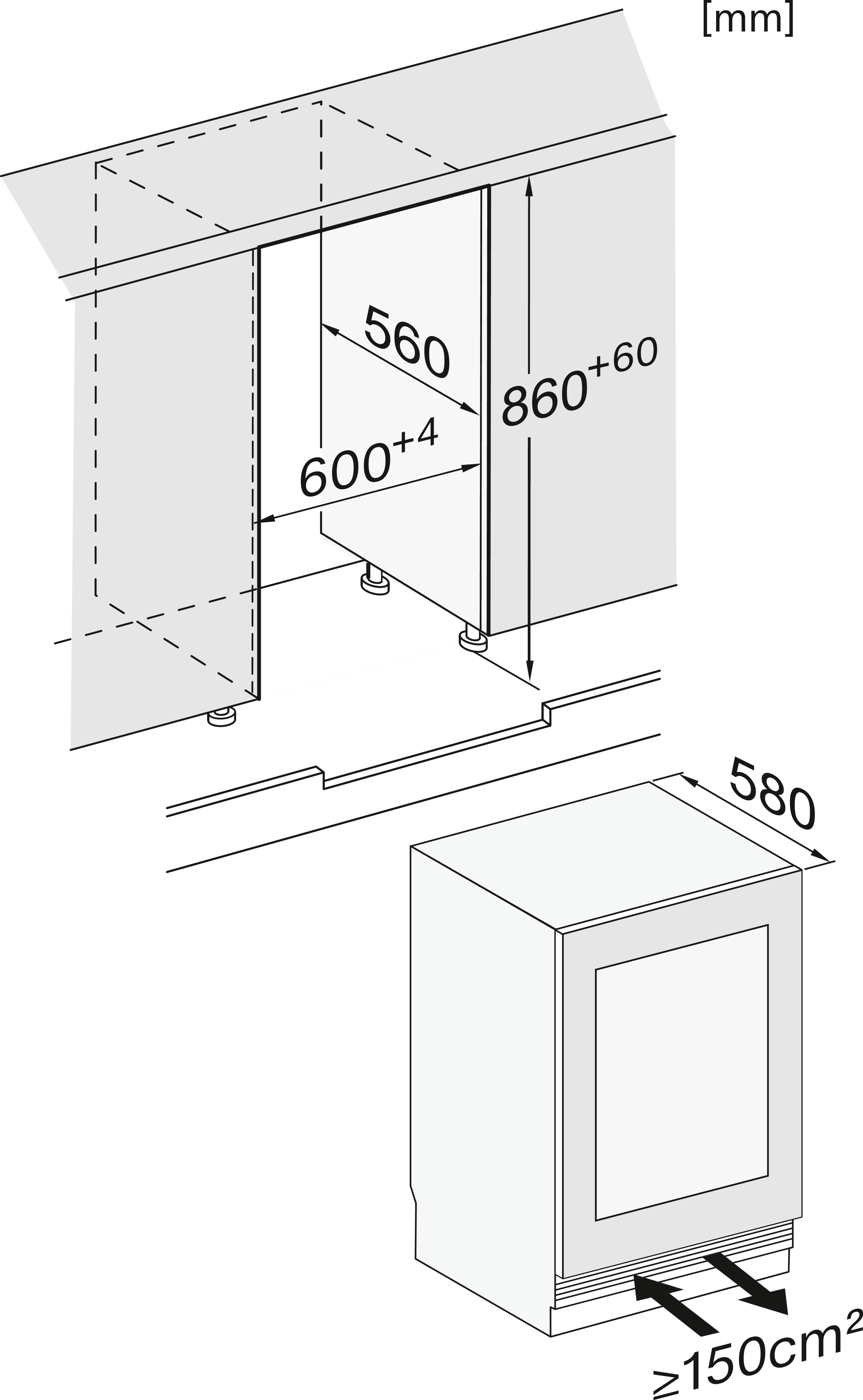 Largeur de la niche min. en mm 600