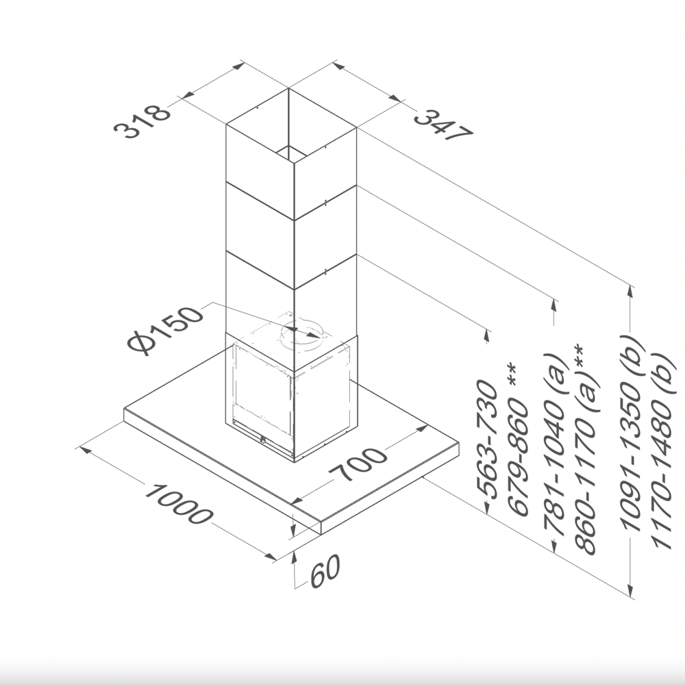 Dimensions du produit avec evacuation (LxPxHmin-Hmax) (mm) 1000 x 700 x 563 - 730