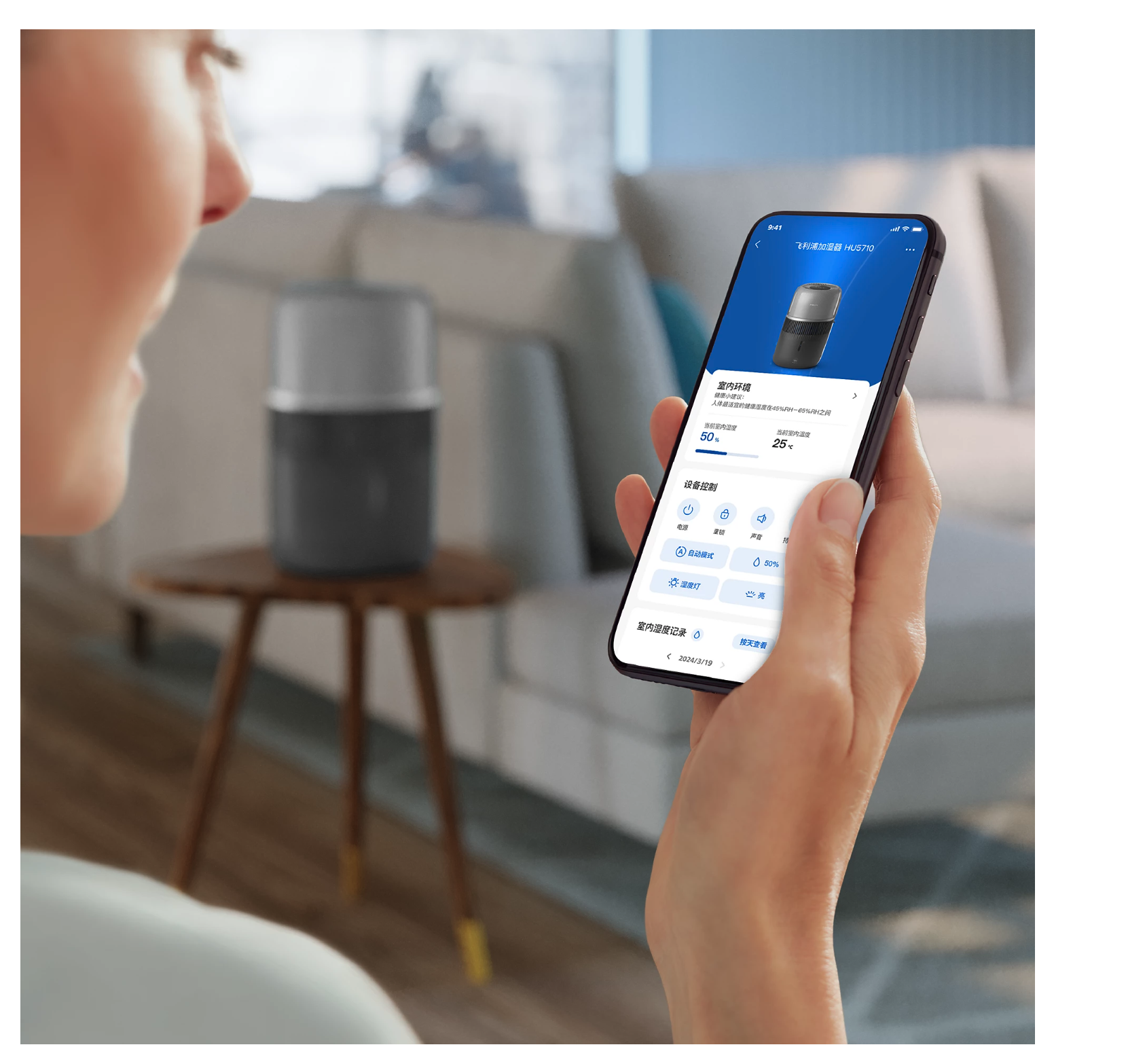 Réglages d'humidification 30-70 % (par paliers de 5 %)