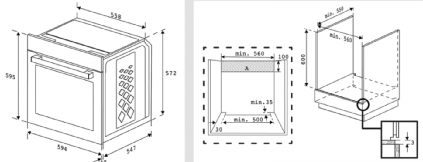 Dimensions niche (H x L x P) : 590x560x550 mm